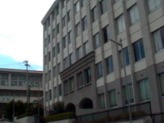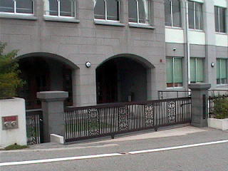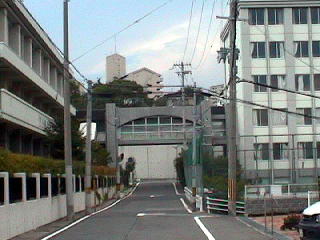 この坂道を8時30分ぎりぎりで登りきり校門にたどり着いたのですが、玄関はこの写真の右手に変わっています。