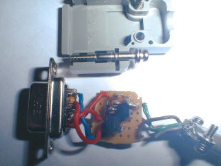 PC側DSUB9ピンのメスコネクタ部のカバーの中に上記の回路を実装した基盤を格納する。