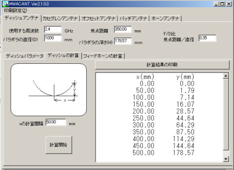 まず、基本設計にMWACANTの設計プログラムを利用し、パラボラの放物線の