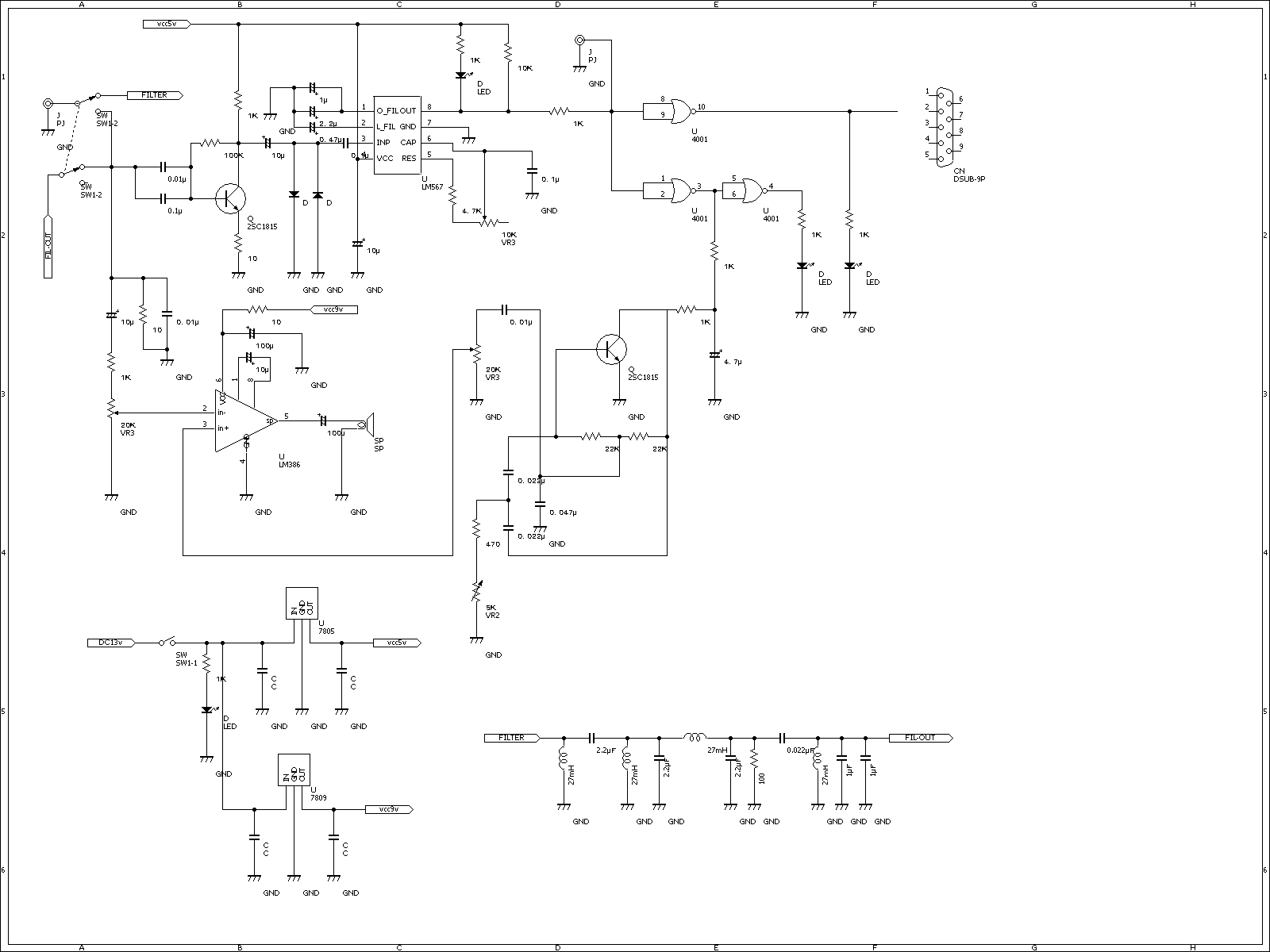 LM567に入力。VR3の調整でロックできるようにしています。LM567の出力信号をインバータで