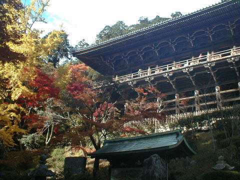 姫路の北西にある円教寺をはじめて訪問 紅葉真っ盛り ロープウェーで4,5分で山門下に到着し、そこから20,30分山道を歩いて各施設に。 山全体にお寺の建物が点在し、趣の有る風情である。
