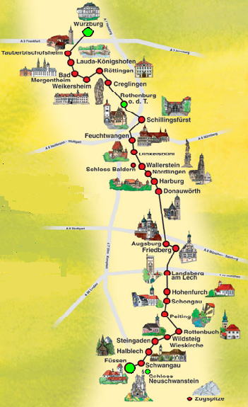 ヴュルツブルクからフッセンまでの中世の街や古城を訪問した。