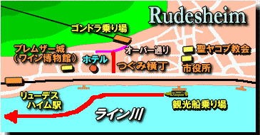 リューデスハイムの町 丘の上にホテルがあるはず