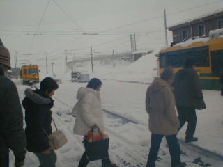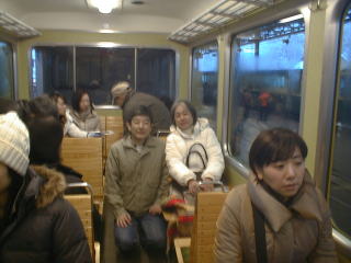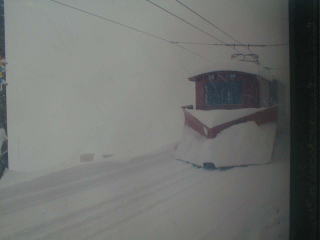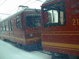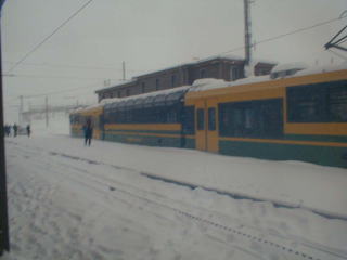 A登山電車に乗車 あいにく吹雪