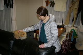 久しぶりに 猫(ミーコとチビ)を相手に 頭を撫でたり。