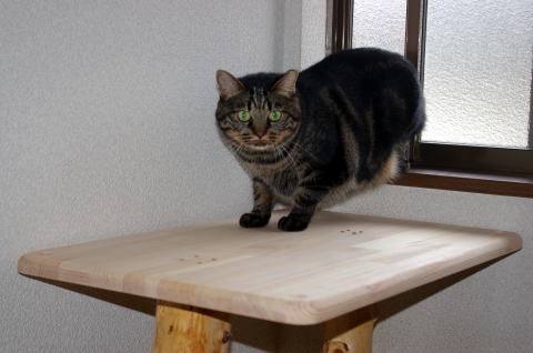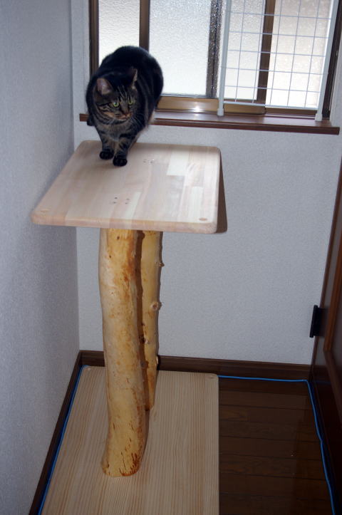 丸太から電動のこぎりで、板を切り出してから、電動カンナで板を作成し、台を作成した。