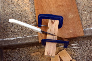 寸法に合わせて 加工 ドリルで5ミリの穴をあけてから のこぎりで加工