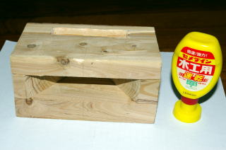 木工用ボンドで3枚の板を接着する
