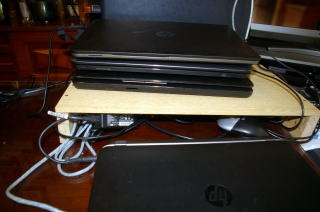 パソコンの電源ケーブルなどが煩雑になってきたので、ヒマラヤスギの伐採した丸太から、製材してパソコンの台を作成した