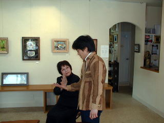 画廊のご主人に手相を見ていただいているところ。