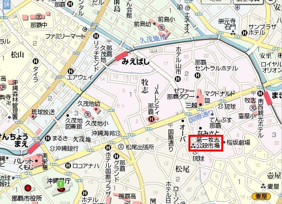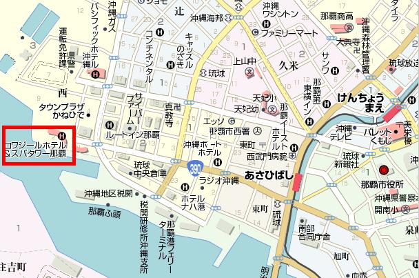 −−>シーサなどお土産の店−(徒歩)−>ロワジールホテル那覇