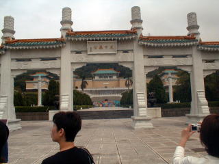 台湾に持ってくることができなかった大物の財宝は北京にあるが、7万点の財宝が台湾にある。後ろに見える山の中に収蔵保管されており、一般公開される数千点を見ることができる。