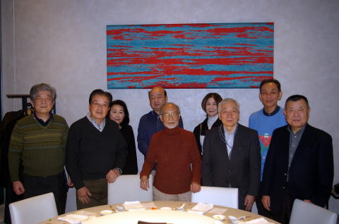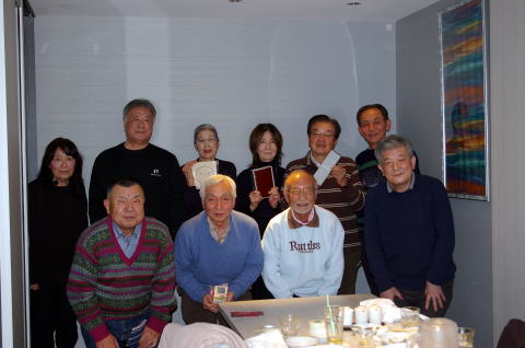 90歳になられた永田先生を中心に もうすぐ70歳の古希を迎える同級生8名が集いました